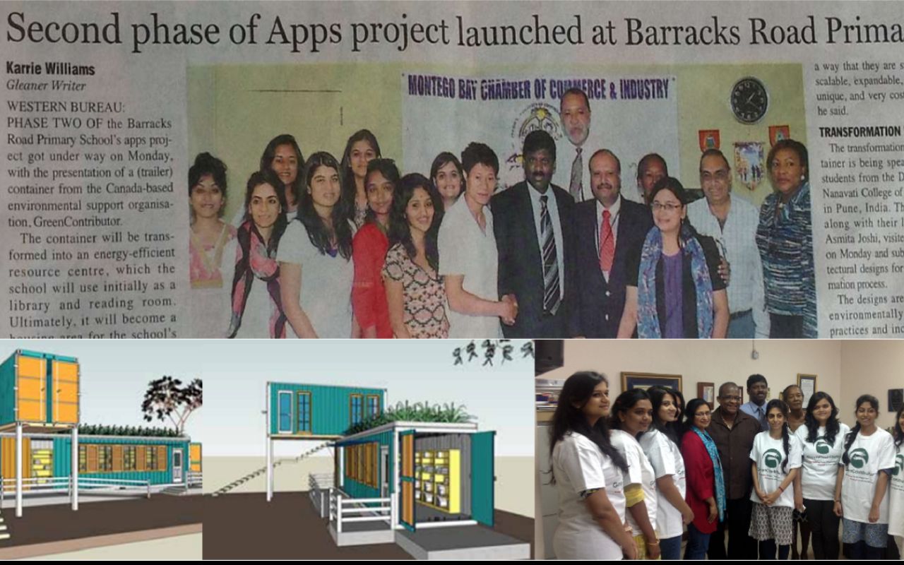 Students from BNCA, Pune (India) designed repurposed shipping containers to serve as classrooms, libraries, and reading rooms for Barrack Road Primary School in Montego Bay, Jamaica—an innovative response to limited space. Their viable design was presented to government and tourism officials, earning strong endorsement and funding support ($3,000 from GreenContributor and $2,000 from a local donor). The refurbished container spaces were completed within a month after handing over the work to be supervised by students from University of West Indies, offering a scalable model for other schools.
