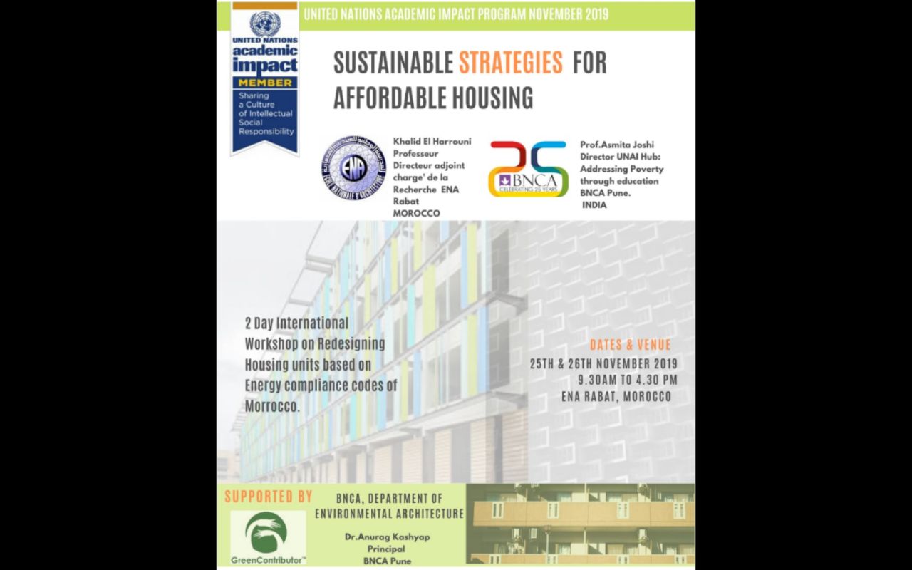 Helped arrange the coordination between National Ecole Architecture University (Rabat) & BNCA (Pune, India) for a 2 day International Workshop on redesigning housing units based on energy compliance codes of Morocco