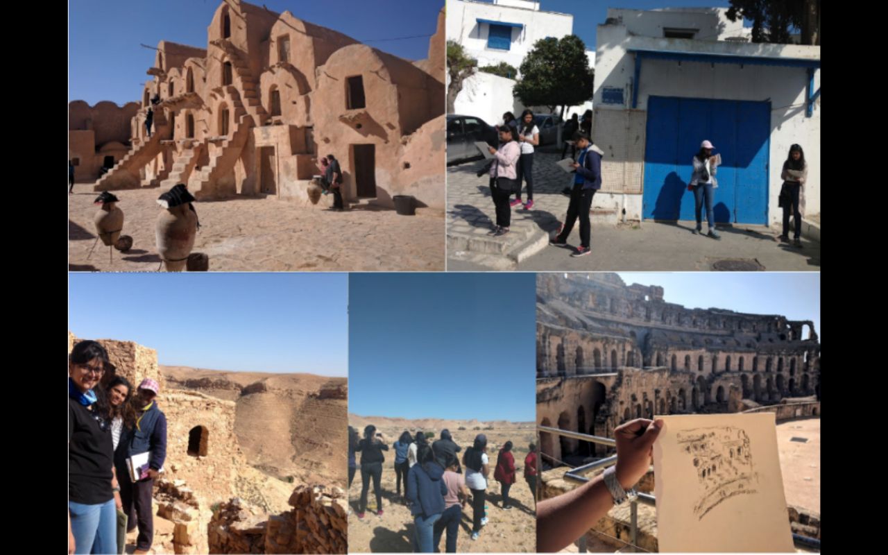 GreenContributor helped arrange a collaboration between faculties from Slovenia, India and Tunisia to design a specialized landscape intervention program for the School of Architecture at Ibn Khaldoun University to help reimagine its currently limited green and recreational spaces. Students began with an on-campus assessment and concept development, followed by a curated study tour across key Tunisian cities known for their distinctive landscapes and design heritage. By experiencing the country’s diverse ecological character and cultural identity firsthand, participants gained inspiration and practical insights. Returning to the university, they spent two intensive days refining and developing their landscape proposals, transforming observations into actionable, context-sensitive design solutions.